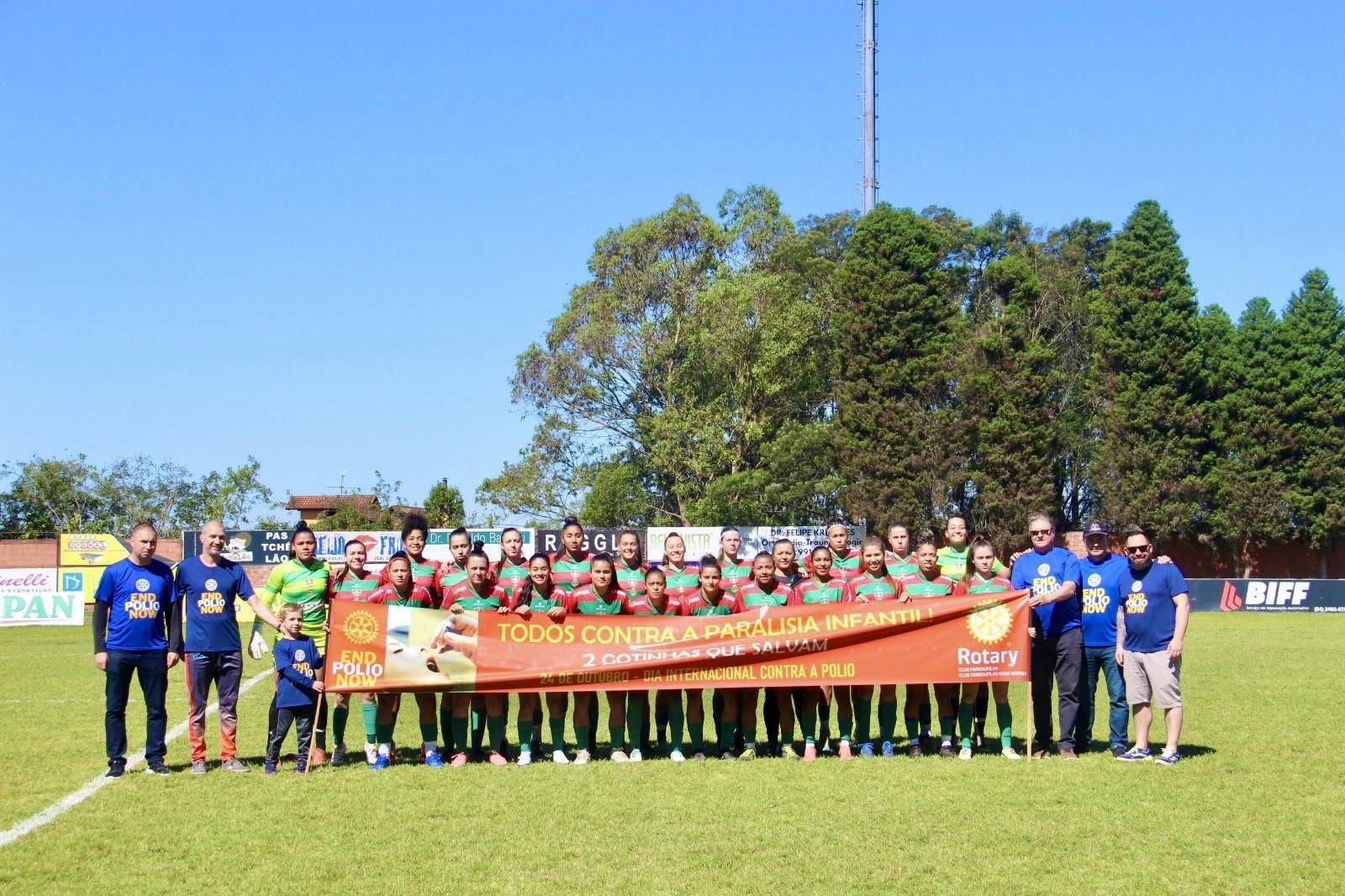 Só que este jogo marcou ainda mais: para marcar o Dia Mundial de Combate à Poliomielite, celebrado em 24 de outubro, o Rotary Clube de Farroupilha Nova Vicenza e o Rotary Clube de Farroupilha, uniram forças com a equipe feminina da SERC Brasil para lembrar que, assim como no futebol, a vitória contra a pólio exige trabalho em equipe e determinação. 💪🦠