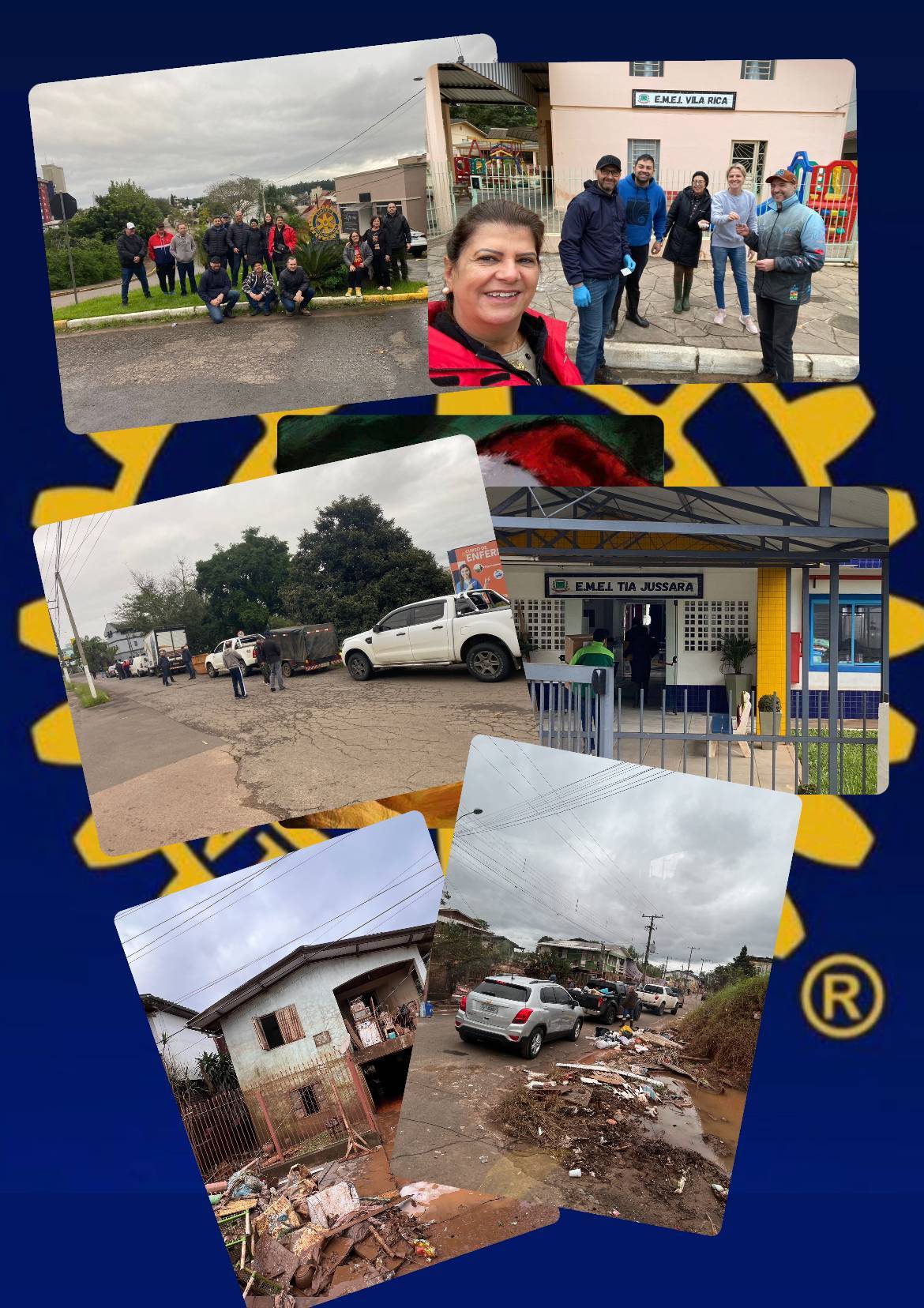 O Rotary de São Sebastião do Caí nos deu as orientações e, com a contribuição da Vakinha do Badin, Escola Municipal Nossa Senhora do Caravaggio, Jipeiros de Farroupilha, Grupo de Voluntários da SERC Farrapos, levamos equipamentos, materiais de higiene e limpeza, uma geladeira (entregue para a EMEI VILA RICA, que teve equipamentos destruídos pela enchente), além de caixas surpresa para crianças e kits de doces e guloseimas para crianças.