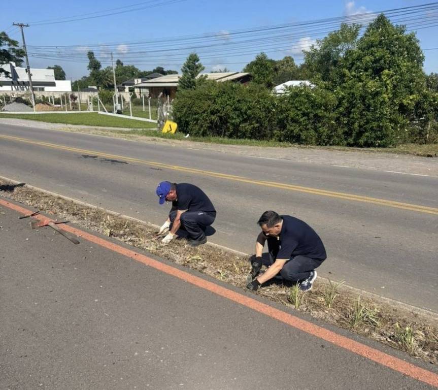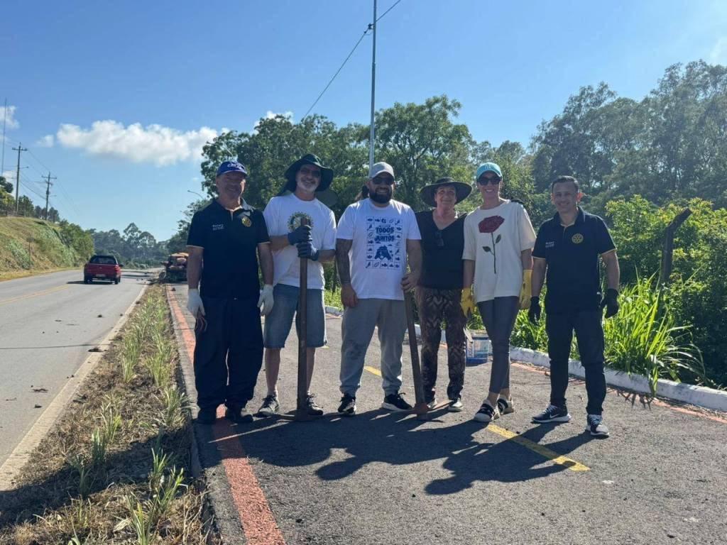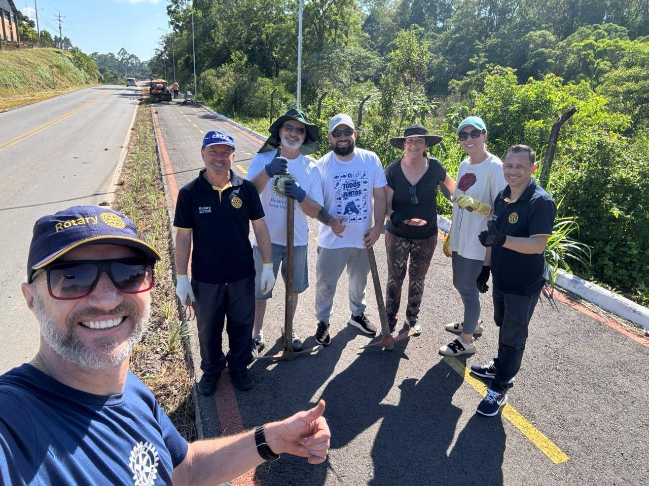 ROTARY CLUB DE FARROUPILHA NOVA VICENZA REALIZA LIMPEZA E PLANTIO DE MUDAS ORNAMENTAIS EM TRECHO DA VRS 813